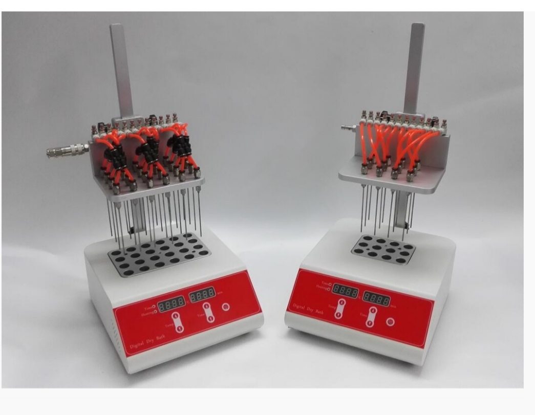 1、加熱器使樣品被快速加熱至蒸發(fā)溫度,同時(shí)氣體經(jīng)氣針吹至溶液表面,促使溶液快速蒸發(fā)和樣品濃縮。